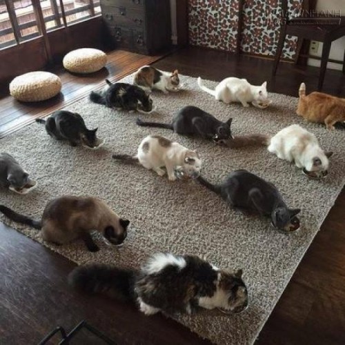 Thật ra, những chú mèo cũng thuộc loài động vật tăng động, chúng cũng rất kiêu ngạo, thường xuyên nghịch ngợm khiến các chủ nhân cũng rất “khổ sở”. Thế nhưng, sau khi nhìn thấy những chú mèo trong quán cà phê này, chắc chắn bạn sẽ có một phát hiện kinh ngạc. Hàng ngũ của chúng ngay ngắn như vậy, lại còn muôn hình muôn vẻ khiến con người phải trố mắt ngạc nhiên.