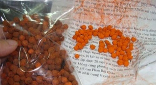 Quan sát của PV, gói thuốc cam bày bán ở trên được chế theo dạng viên tròn nhỏ, vị hồng đơn, có 100 viên, đóng trong túi nilon. Theo chủ cửa hàng này, nếu không thích dùng dạng viên nén, cửa hàng cũng có những gói thuốc cam được đóng dạng bột...