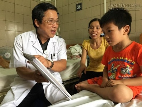 TS Nguyễn Kim Sơn – Giám đốc trung tâm Chống độc, BV Bạch Mai kiểm tra sức khỏe bé N..