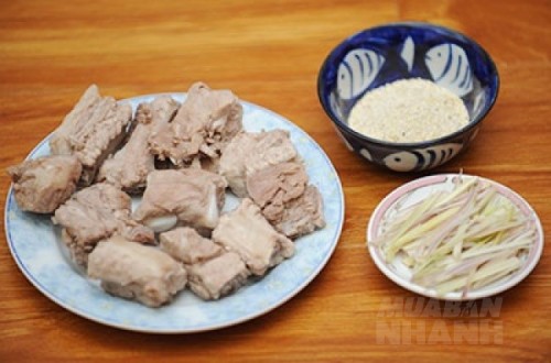 - Sườn chặt miếng vừa ăn, rửa sạch, cho vào luộc qua một lần nước rồi đổ nước đi, rửa lại sườn.