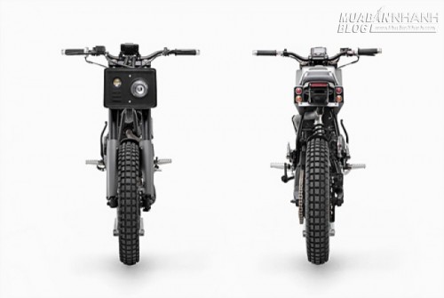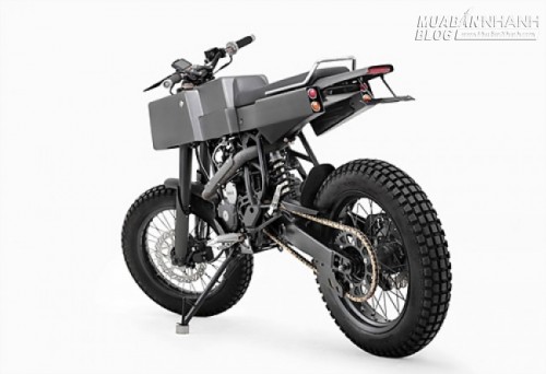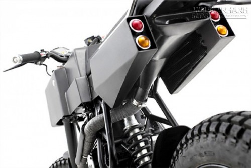 Ống xả tự chế bằng thép không gỉ và có lớp bọc màu xám, tay lái Rental Fatbar với tay phanh và tay côn mới, bảng điều khiển mới với chỗ gắn điện thoại và máy GPS... Cuối cùng là bửng độ để bảo vệ động cơ. Xe chỉ sơn 2 màu là xám kim loại và đen.