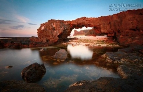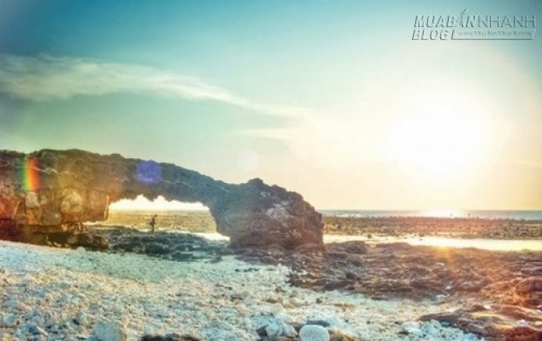 Từ cầu cảng chính đi vào cổng chào của Lý Sơn, rẽ trái rồi men theo con đường nhỏ đến gần chùa Đục sẽ thấy một mỏm đá bé nằm sát dưới biển. Đây là Cổng Tò Vò - một trong những địa điểm yêu thích của các bạn đam mê chụp ảnh khi đặt chân tới Lý Sơn.