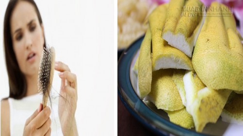 - Vỏ bưởi: Bạn ngâm vỏ bưởi trong nước ấm rồi để qua đêm. Hôm sau, bạn sử dụng nước vỏ bưởi để gội đầu rồi xả lại với nước sạch. Các tinh chất có trong vỏ bưởi sẽ giúp tóc trở nên bóng mượt và giảm gãy rụng hiệu quả. Bạn cũng có thể đun vỏ bưởi rồi chắt lấy nước để gội đầu nhé!