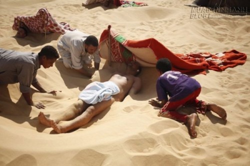 Theo lời các bác sĩ bản địa, việc mình trần tắm cát giữa sa mạc thường xuyên sẽ giúp du khách chữa khỏi một số bệnh như thấp, viêm khớp và thậm chí cả bệnh vô sinh, bất lực.