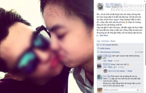 “Cô…cô có nhớ cô đã từng hứa với cháu chừng nào em học xong cấp 3 và đỗ vào đại học. Cô sẽ cho em và cháu chính thức “quen” nhau không? Gần 2 năm rồi…cháu vẫn chờ vào lời cô hứa. Cháu tin tưởng rằng cô chú sẽ không nuốt lời.