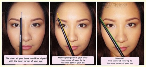 Để lông mày hài hòa với gương mặt, tạo nên tỷ lệ thật cân xứng, các cô nàng nên đo kỹ 3 điểm trước khi tỉa lông mày, đó là phần đầu thẳng với cánh mũi, phần cong lên của lông mày và đuôi lông mày. Đầu và đuôi của lông mày phải nằm trên một đường thẳng để đôi mắt cân đối với toàn bộ gương mặt.