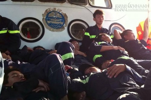 | Đội cứu nạn tranh thủ chợp mắt trên tàu khi ra hiện trường tìm kiếm 5 thuyền viên mất tích. Ảnh: Zing |