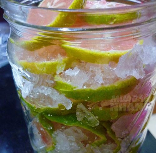 - Đường phèn giã nhỏ cho xuống đáy lọ tiếp đến 1 lớp chanh, cứ thực hiện đến hết.