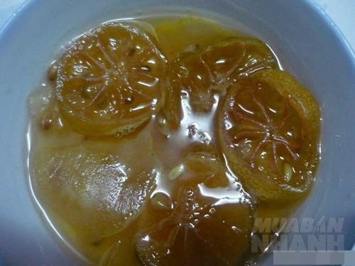 - Cuối cùng bạn đổ mật ong vào, dùng vỉ đan bằng tre để nén chanh ngập trong mật ong, tránh tạo váng.