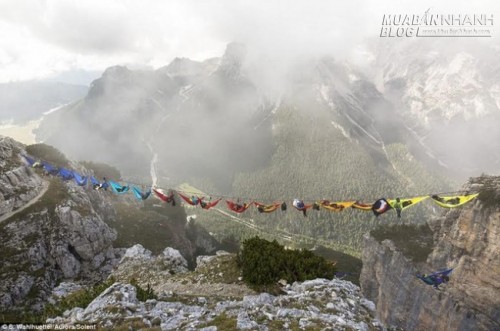 Dãy võng được treo lơ lửng ở độ cao hơn 50 mét trong khi những "người hùng" nằm trên đó vẫn mạo hiểm cười đùa, đọc báo, chơi kèn và chuyền cho nhau nước uống rất tự nhiên. Một số chợp mắt ngon lành trong túi ngủ bất chấp khe núi sâu hun hút bên dưới.