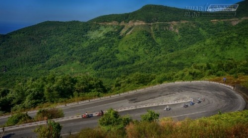 Bước sang ngày thứ 6, team phượt Bắc Trung Bộ có cơ hội thử sức mình và người bạn đồng hành 2 bánh vượt qua đèo Hải Vân. Đèo Hải Vân dài 21km với nhiều khúc quanh, đoạn lên xuống rất hiểm trở. Một bên đèo là vách đá với cây xanh mát rượi, phía bên kia là biển xanh chạy tít đến chân trời. Khung cảnh thực sự đáng chiêm ngưỡng nhưng đây cũng là cung đường thử thách tay lái của các phượt thủ, yêu cầu độ tập trung cao cũng như sự mạnh mẽ, bền bỉ của người bạn đồng hành.