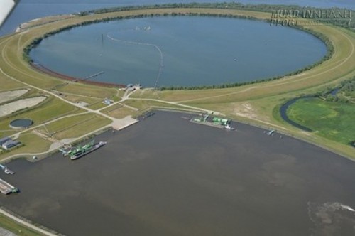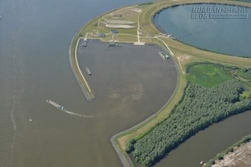 Một hòn đảo cũng được tạo xung quanh hồ nước thải để xây dựng các cơ sở thực hiện nhiệm vụ tách các chất ô nhiễm từ cát nạo vét và than bùn. Cát sạch được sử dụng cho xây dựng tại các địa điểm khác.
