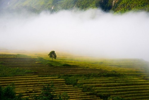 Khi thu sang, tiết trời trở nên dịu mát với gió nhẹ và nắng vàng như mật. Đó cũng là lúc những cánh đồng ruộng bậc thang chín vàng bao phủ khắp vùng đồi núi như gọi mời du khách. Nhiều bạn trẻ khó có thể kìm lòng mà không xách ba lô lên và đắm mình trong mùa thu tuyệt đẹp ở Tây Bắc. |
