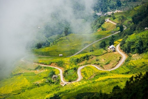 | Con đường uốn lượn qua những triền lúa trong mây khiến những người mê xê dịch không thể cầm lòng. |