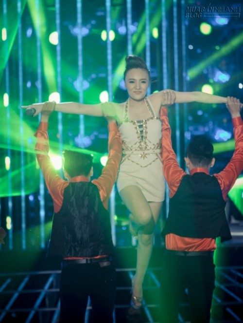 Nhật Thủy dự thi với tiết mục hóa thân 'đàn chị' Thu Minh, biểu diễn ca khúc 'Bay'. Cô chia sẻ, Thu Minh có động tác hình thể uyển chuyển, cách nhả chữ chuyên nghiệp nên cô vừa phải tập vũ đạo vừa luyện thanh kỹ càng để có tiết mục ấn tượng.