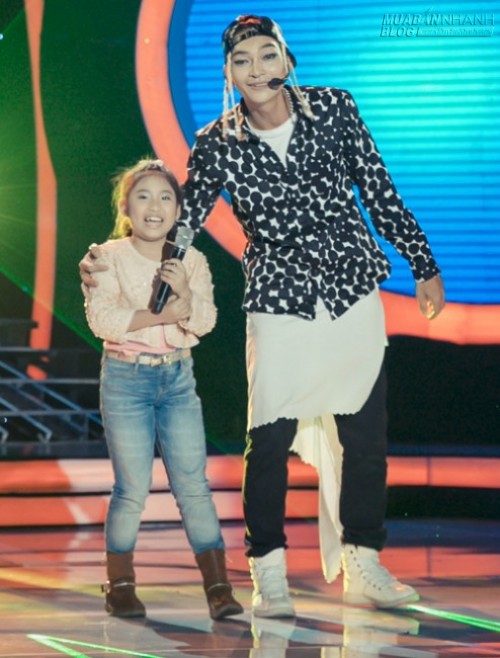Bé Ju Uyên Nhi - quán quân Gương mặt thân quen nhí có mặt trong chương trình, làm nhiệm vụ phiên dịch tiếng Hàn cho giám khảo Hoài Linh.