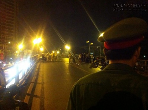 Cơ quan chức năng đã phong tỏa cầu vượt để khám nghiệm hiện trường.