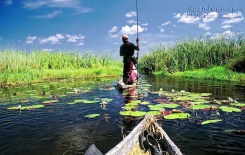 Du khách đi thuyền độc mộc khám phá đầm lầy Okavango Delta, Botswana - Ảnh: blogspot