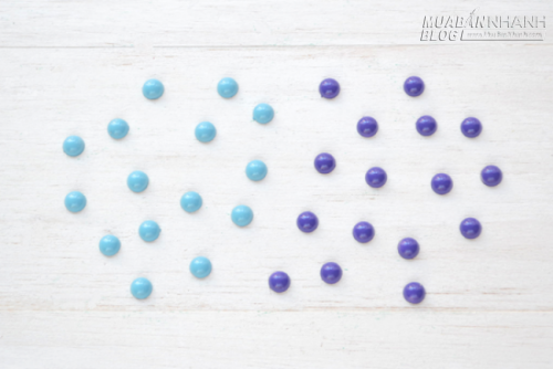 - Đặt các hạt cườm lên giấy báo hoặc giấy nháp, mang ra ngoài không gian rộng để sơn màu rồi phơi khô. Bạn nên chọn những màu sơn nổi bật so với màu nền của chiếc ví. Ở đây, chúng ta chọn hai màu xanh nhạt và xanh đậm để tạo thành hiệu ứng ombre hiện đại, khác lạ.