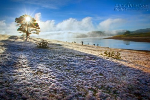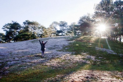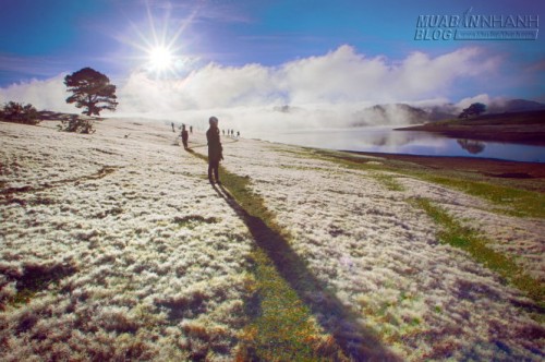 Làn cỏ mềm như nhung tạo điều kiện cho sương đọng dày trông như tuyết