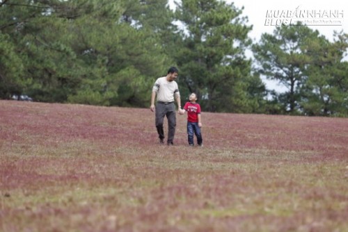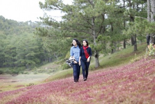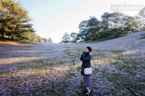 Du khách đến sau khi sương tan để chụp với cỏ hồng nguyên bản