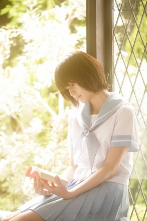 Mấy buổi sau, tôi theo các bạn cùng lớp vào quán. Lan ngồi ở đó, sau chiếc bàn con bên cửa sổ. Các bạn tôi ai cũng nhìn về phía Lan, còn cô bé thì chẳng nhìn ai, cứ lặng lẽ một mình. Ngồi ở một bàn xa mà tôi như thấy cả bầu trời hoàng hôn tím, tím ngát ngoài kia đang in trong đôi mắt Lan. Mãi đến khi chúng tôi ra về, Lan mới ngoái nhìn, ánh mắt thơ ngây mà não nùng. Bỗng dưng đỏ mặt, rồi tôi thấy hoảng sợ vì mình đã đỏ mặt...