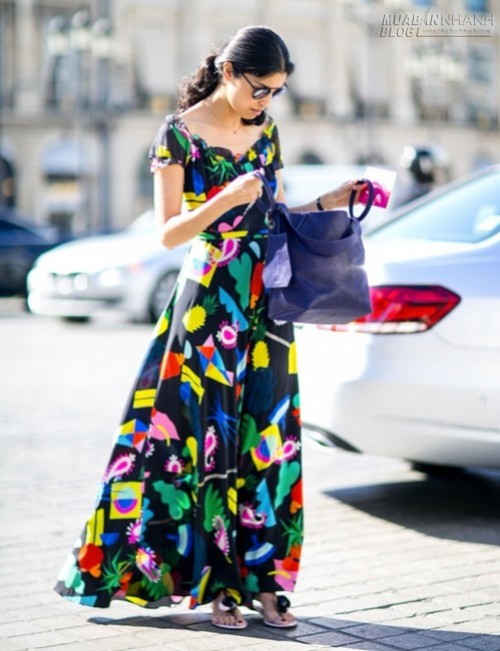 Quý cô diện style đầy màu sắc với chiếc đầm maxi pha trộn đủ loại họa tiết.