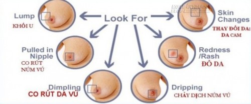 Có thể là thay đổi về màu sắc hay trạng thái. Vùng da quanh núm vú bỗng dưng đỏ tấy, nhăn nheo, xuất hiện các hạt nhỏ ở quầng quanh núm vú.