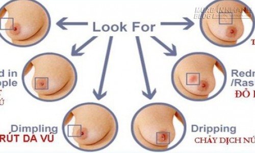 Da phù thũng, tấy đỏ, chảy dịch ở đầu vú, bong da vảy nến, ngứa quanh núm vú.