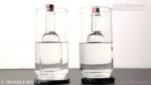 Chắc hẳn các bạn đã nhận ra mấu chốt vấn đề là ở việc chất lỏng trong cốc không phải là nước mà là glycerine. Tuy nhiên, tại sao chai nước khi đặt trong chất này lại có thể biến mất, trong khi đặt trong nước thì không?
