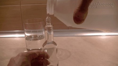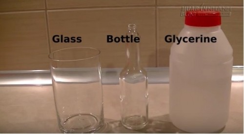 - Sau đó, đổ đầy glycerine vào chai như hình dưới đây.