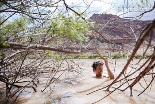 Joey tắm sông lúc nghỉ trưa ngày đầu tiên. Ảnh:Max Lowe. |