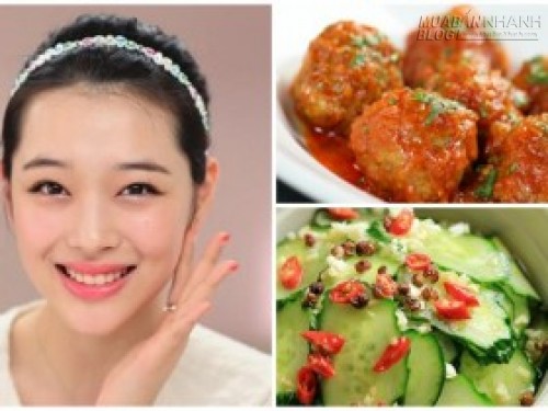 - Thịt băm sốt cà chua: cà chua có chứa hàm lượng lớn vitamin C giúp dưỡng da trắng hồng đồng thời ngăn chặn sự hình thành của tàn nhang, trong khi đó thịt nạc lại có tác dụng tăng cường collagen, giúp da mịn màng và tươi trẻ. Bên cạnh món thịt băm sốt cà chua, bạn có thể sử dụng canh thịt băm cà chua hay thịt nạc luộc với uống nước ép cà chua để thay đổi khẩu vị.