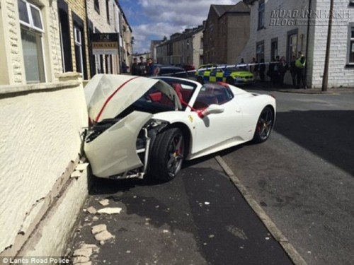 Được biết, chú rể Ali 25 tuổi đã đặt cọc khoản tiền 5000 bảng Anh (gần 160 triệu VNĐ) để thuê chiếc xe ferrari 458 spider phục vụ đám cưới của anh vào cuối tuần qua. Nhưng trước hôm diễn ra lễ cưới chính thức 1 ngày, trên đường lái xe đến nhà một người bạn, anh Ali đã bị trượt chân và đạp nhầm ga thay vì phanh nên chiếc xe đã bị đâm sầm về phía trước, đập mặt vào một ngôi nhà bậc thang nhưng rất may mắn là cặp đôi không bị thương nghiêm trọng.