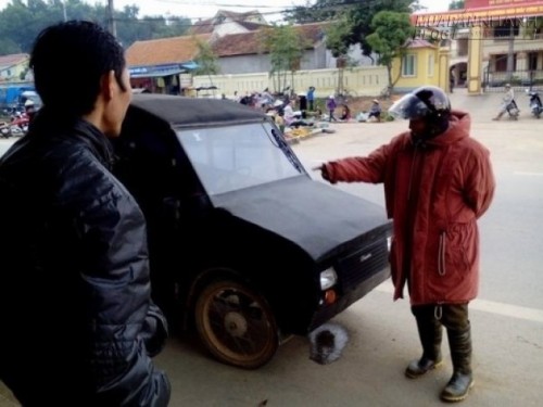 Mới đây, cộng đồng mạng đã tỏ ra cực thích thú với hình ảnh của một chiếc xe hơi tự chế khá độc đáo. Trên một tài khoản của một thành viên mạng chia sẻ: “Chỉ muốn có chiếc xe để che mưa che nắng cho con đi học và nó đã được ra đời với tình thương, sự sáng tạo và tâm huyết của người cha” đã được rất nhiều lượt yêu thích và chia sẻ của cộng đồng mạng.