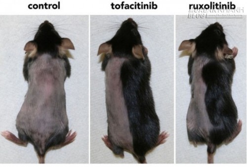Áp dụng loại thuốc ức chế JAK lên những con chuột hói, các nhà khoa học nhận thấy chúng mọc lại lông mới chỉ trong 10 ngày. Sau ba tuần điều trị, chuột thí nghiệm gần như có một bộ lông hoàn hảo. Không những thế, phương pháp này cũng được chứng minh có hiệu quả trong việc sản xuất tóc dài hơn từ nang tóc của người trưởng thành.
