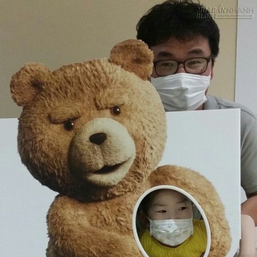 Mẹ đi mua khẩu trang rồi. Con yêu, chụp với bố một tấm nào! Làm cả một bộ ảnh tình yêu thời MERS của riêng bố con mình thôi nhé.