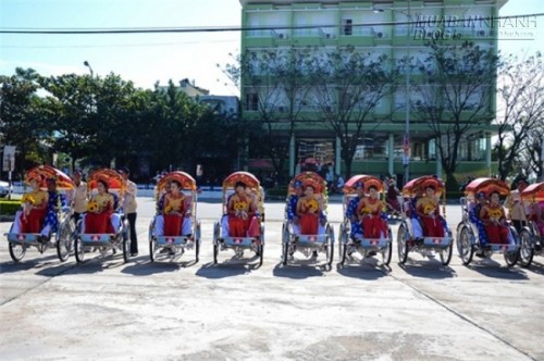Sáng 27/12, lễ đưa dâu bằng xe xích lô xuất phát từ trụ sở Liên đoàn Lao động TP Đà Nẵng (đường Pasteur, quận Hải Châu) chuyển qua đường 2 tháng 9.