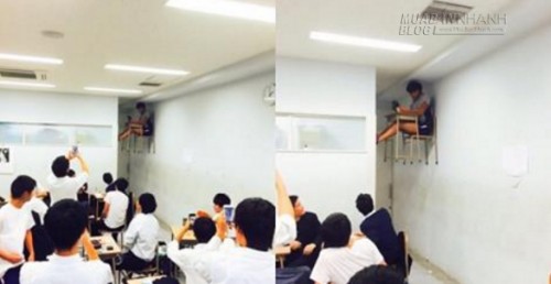 Bất cứ ai đi qua lớp học này tại Nhật Bản chắc chắn đều không khỏi giật mình khi nhìn vào quang cảnh phía bên trong. Trong khi học sinh trong lớp đang vô cùng náo loạn thi nhau giơ điện thoại chụp ảnh, bàn tán xôn xao thì phía góc lớp có một nam sinh đang ngồi lơ lửng với dáng ngồi khá thoải mái trên bàn học gần trần nhà.