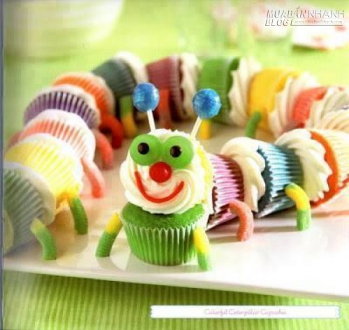 Những chiếc bánh cupcake hơi đơn điệu khi bày ra dĩa? Hãy dùng những miếng giấy lót bánh đủ màu sắc, và sắp xếp thành hình con sâu, dùng kẹo dẻo làm chân của sâu, sẽ khiến món bánh cupcake trở nên ngon mắt và sinh động.