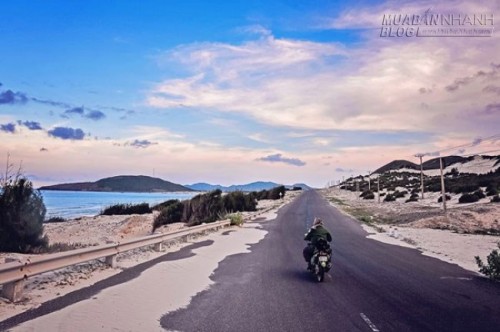 Cung đường với lúc thì một bên biển, một bên cát, lúc thì lại biến hóa với xung quanh là những đồi cát bao vây tứ phía.