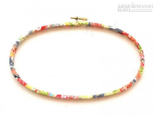 | Bước 5: - Cắt 1 dải dây vải hoa văn nhiều màu sắc, cuộn bọc dây vải theo vành của khung thêu bên ngoài. |