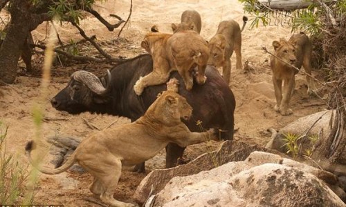 Những hình ảnh đáng kinh ngạc về trận chiến tại Game Reserve Londolizi gần Vườn quốc gia Kruger với 5 con sử tử hùng dũng và một con trâu già. Điều đáng quan tâm là 5 con sư tử này đang cào và cắn vào cổ trâu rất quyết liệt.