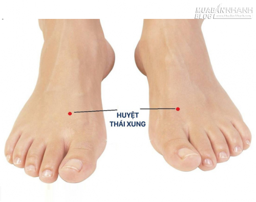 Huyệt Thái xung nằm trên lưng bàn chân ở vị trí giữa xương nối ngón chân cái và ngón chân thứ 2. Xem hình mình họa để nhận biết điểm chính xác.