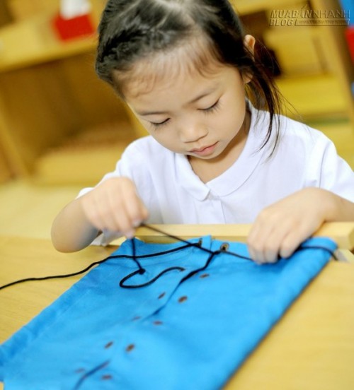 Trẻ được giáo dục theo Montessori - phương pháp sư phạm của bác sĩ, nhà giáo dục người Ý Maria Montessori - học qua cảm giác. Thông qua các trò chơi, các em được phát triển kỹ năng hướng đến sự phát triển về cảm xúc, tư duy, Toán học...