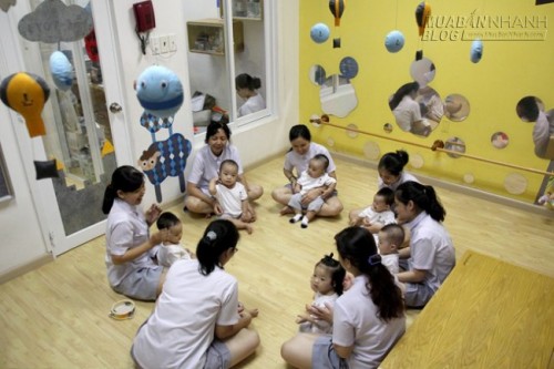 Ở những lớp cho trẻ dưới 12 tháng tuổi, mỗi phòng có khoảng 10 em. Mỗi trẻ được một cô giáo kèm cặp riêng.