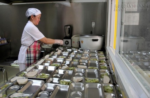 Khu vực bếp chia khẩu phần bữa cơm trưa cho các bé tùy theo lứa tuổi.