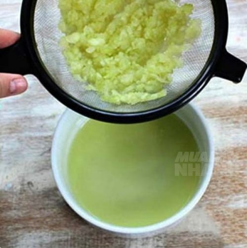 - Tiếp đó, dùng rây lọc loại bỏ phần bã, ép lấy phần nước cốt dưa chuột.