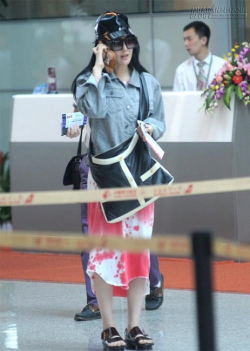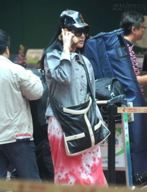 Một ngày trước đó, paparazzi chộp được hình ảnh Hinh Dư tại sân bay, cô đi một mình và mải mê trò chuyện điện thoại, tinh thần rất vui vẻ.