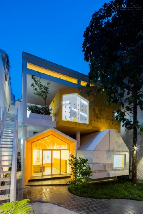 Đa số các trường mầm non hiện nay ở Việt Nam đều được thiết kế đơn giản như các khu nhà thông thường kê thêm bàn ghế, đồ chơi cho trẻ nhỏ. Nhưng ngôi trường dành cho các bé dưới 6 tuổi ở Sài Gòn có mặt tiền và không gian bên trong rất khác biệt, lấy cảm hứng từ cách trẻ nhìn về thế giới xung quanh.